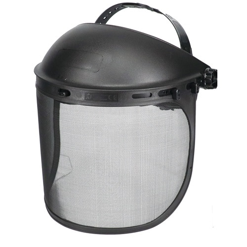 上部に保護カバーの付いた直かぶり型防災面。ポリカーボネート、遮光、金属メッシュなど5種のレンズから選べます。
