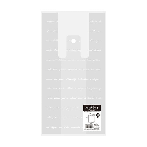 洋菓子やパンなどを入れるのにおすすめのレジ袋です。アンシャンテとはフランス語で「魔法にかけられた」「魅了された」という意味で、心を込めて作られたお菓子への想いがフランス語で綴られています。 |