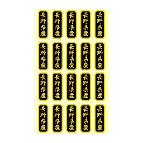 特産品・名産品の販促におすすめの産地シール。特別感を演出し、購買意欲を高めます。売り場で目立つ、金に黒の高級感のある筆文字デザイン。200枚(20×10シート)【印字内容】長野県産 |