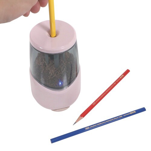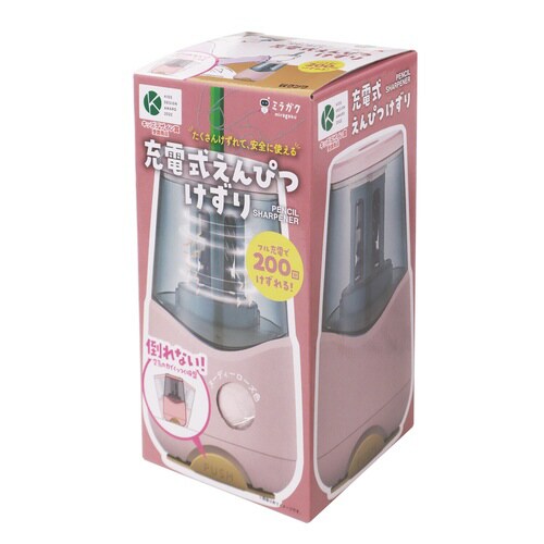 学習に最適な充電式鉛筆けずり。空気の力でくっつく吸盤付で倒れない。120分のフル充電で200回以上削れる。オーバーヒート防止、ムダ削り防止機能付。microUSBケーブル付・保証書付。 |