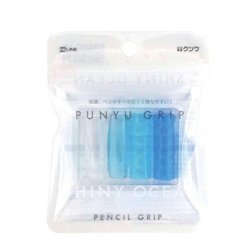 鉛筆、ペンがすべりにくく持ちやすい!丸・三角型プニュグリップ。使わないときの保管にも使えるチャック付袋。直径8mm程度の筆記具につけられる。 |