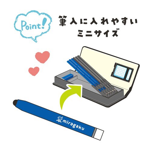 筆入にも入り、こどもの手にも使いやすいミニサイズのタッチペン。お名前スペース付。静電容量式タッチパネルのタブレット、スマートフォン対応。 |