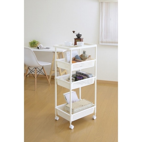小物を収納してすっきり片付く4段タイプです。中に何を収納したかが見やすく、必要なものがサッと取り出せます。移動に便利なキャスター付きです。シンプルなので使う場所を選びません。 |
