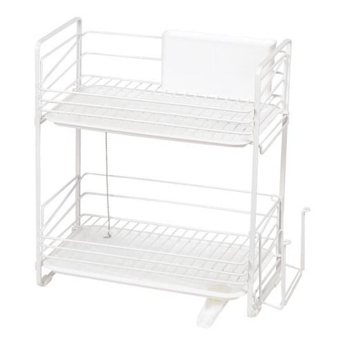 防サビ加工が施された「シンプルストレージシリーズ」です。シンプルで清潔感のある白色の水切りバスケットです。2段タイプでたっぷり収納でき、奥行がスリムなので場所を選ばずに置くことができます。 |