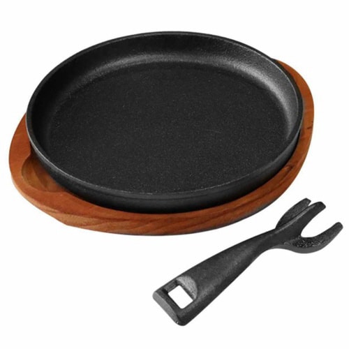 自宅でお店の味を楽しめるステーキ皿 丸型21cm 保温性に優れ、冷めにくいので美味しさ長持ち 専用のハンドル付きなので持ち運び安心 ガス火、IH両対応 セット内容 |