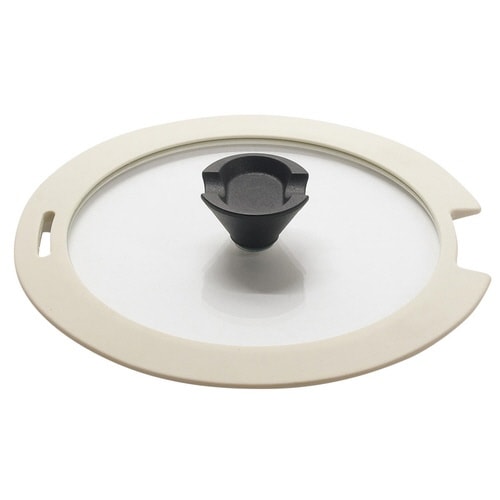 「トルティーノ」シリーズ専用のガラス蓋20cm用(単品)です。 フチは柔らかいシリコーンゴムなので、鍋を傷つけません。 くぼみがあるので、専用ハンドルを装着したままピッタリと蓋ができます。 |