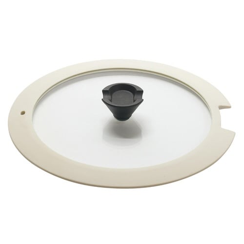 「トルティーノ」シリーズ専用のガラス蓋24cm用(単品)です。 フチは柔らかいシリコーンゴムなので、鍋を傷つけません。 くぼみがあるので、専用ハンドルを装着したままピッタリと蓋ができます。 |