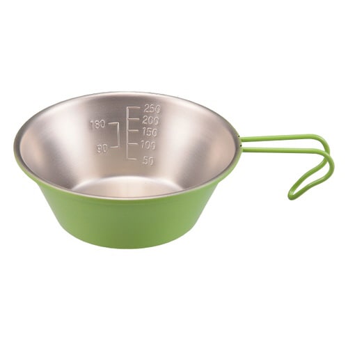 直火にかけられ、コップや食器、調理器具など様々な使い方ができるシェラカップです。 丈夫で錆びにくいステンレス製でお手入れも簡単です。 計量に便利な50ml刻みの目盛り付きです。 |