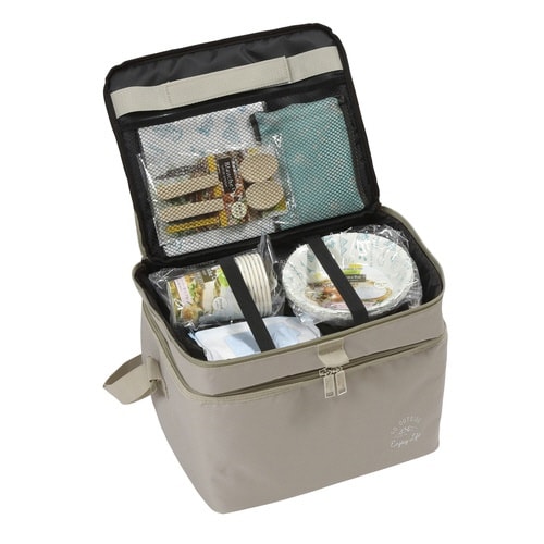 2部屋に分けて使えるクーラーバッグMサイズです。 開閉しやすいダブルファスナーです。 持ち運びに便利なショルダーベルトが付いています。 上段は食器やお菓子などを入れるのに最適です。 |