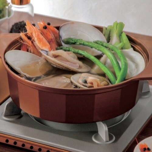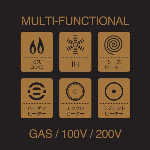 落ち着きのあるマットなゴールドカラーの卓上鍋です。 しゃぶしゃぶ、寄せ鍋、ポトフにもマルチにお使いいただけます。 IH、ガス火対応です。 ツールがチョイ置き出来るガラス蓋付きです。 |