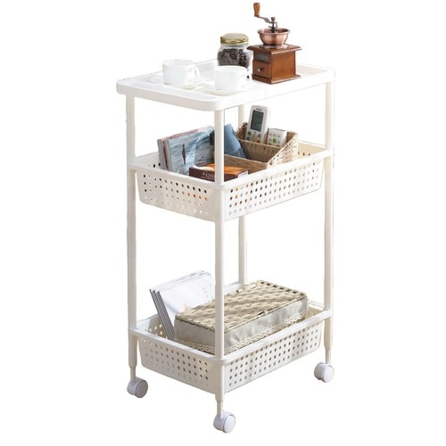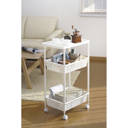 小物を収納してすっきり片付く3段タイプです。 中に何を収納したかが見やすく、必要なものがサッと取り出せます。 移動に便利なキャスター付きです。 シンプルなので使う場所を選びません。 |