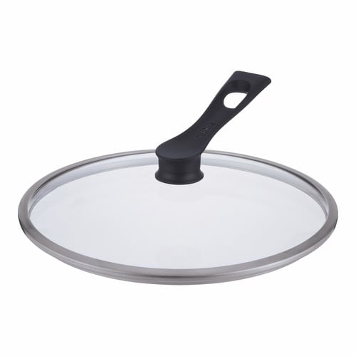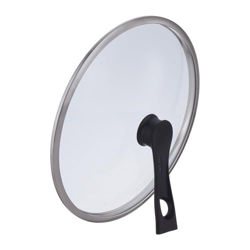 ガラス製でフタを開けずに中の様子を確認できるので、料理の美味しいタイミングを逃しません。 自立するのでキッチンの限られた作業スペースを有効に使えます。 28cmのフライパンに対応します。 |