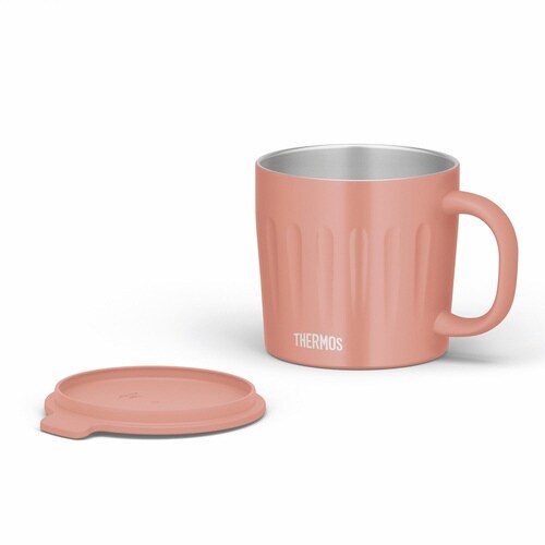 たっぷり飲めるステンレスマグカップです。 プラスチック製のふたが付いています。 ふたを外すときに便利なタブ付きです。 おいしい温度が長持ちする魔法びん構造です。 |