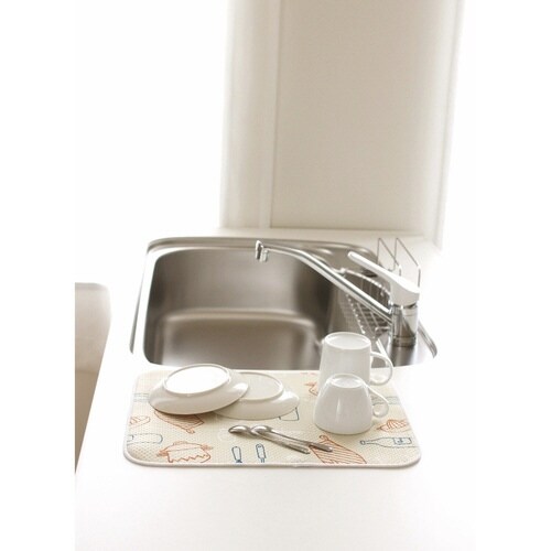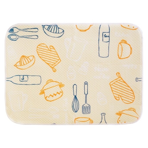 ちょっとした洗いものに便利な薄手の水切りマットです。 キッチンが楽しくなるようなポップでカワイイ柄になっています。 表面はポリエステルの糸を使った網代編み風の生地になっています。 |