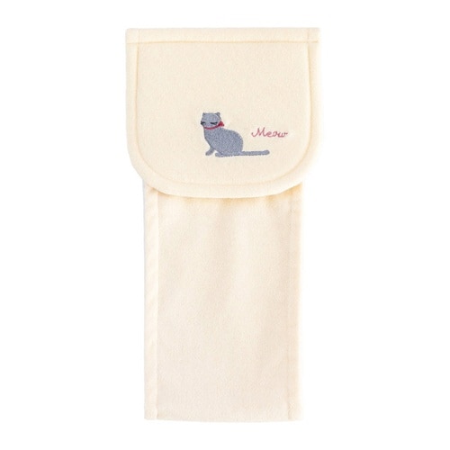「ミニョン」シリーズのペーパーホルダーカバーです。 かわいらしいねこと、「ミャウ」という鳴き声の刺繍が施されており、楽しいデザインになっています。 |