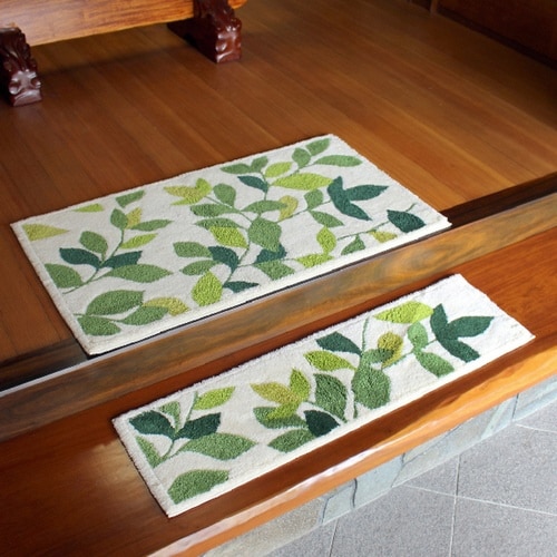 玄関マット 洗える コーナー吸着 30×110 cm 室内 リーフグリーン