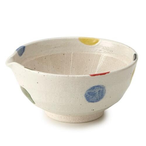 手描き風水玉柄の陶器製片口すり鉢20cmです。 食卓にそのまま出せて、おもてなしにもぴったりなデザインです。 電子レンジ、食洗機が利用できます。 安心の日本製です。 |