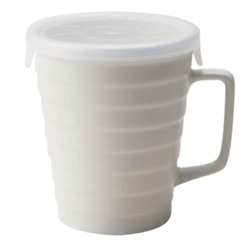 抗菌効果のある特殊釉薬で仕上げた美濃焼きのマグカップです。 蓋付きなのでホコリなど入るのを防いでくれます。 万が一倒してしまっても中身がこぼれにくく安心です。 蓋をしたままレンジで温められます。 |