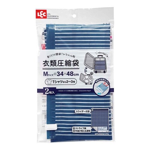 手で巻くだけで簡単に圧縮できる衣類用圧縮袋です。 Mサイズ2枚入りです。 空気が逆戻りしない逆止弁付きです。 ファスナーを閉めやすくするスライダー付きです。 |