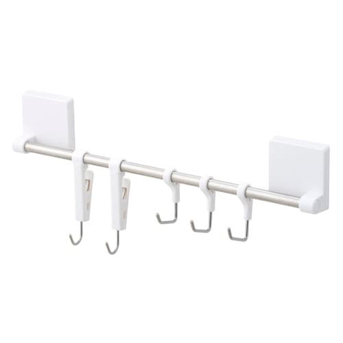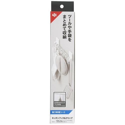 強力吸着シートでしっかり取り付けられるキッチンフック&クリップです。 キッチンツールや手袋、ミトンなどをまとめて吊り下げ収納できます。 サビにくいステンレスパイプ製です。 |