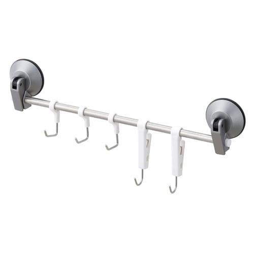 ジェル吸盤でしっかり取り付けられるキッチンフック&クリップです。 キッチンツールや手袋、ミトンなどをまとめて吊り下げ収納できます。 サビにくいステンレスパイプ製です。 |