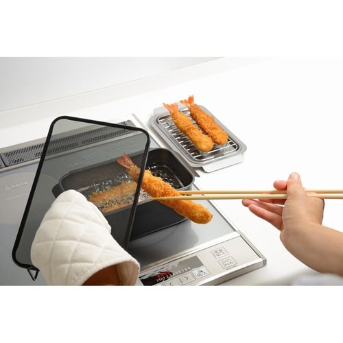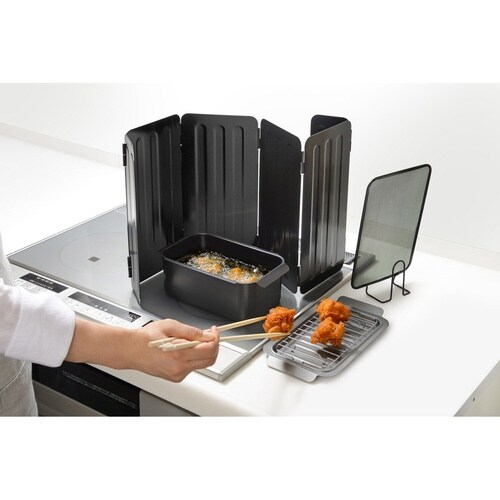 揚げ物調理の際、コンロ周りを汚す油ハネはしっかりガードしてくれるポコフリットシリーズのオイルスクリーンです。 本体はふっ素樹脂加工されているので、使用後のお手入れも簡単です。 |