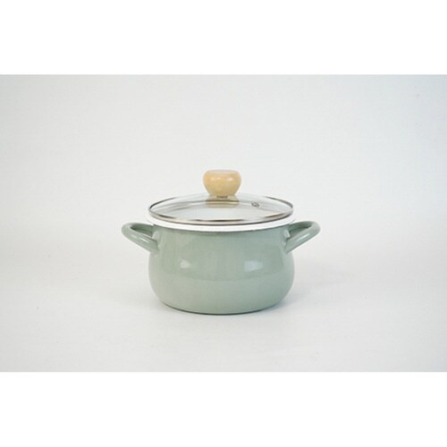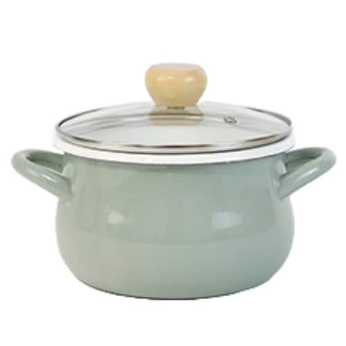 両手鍋 18cm IH対応 ホーロー製 クッキングポット ストクック ガラス蓋付き アミ付き グリーン