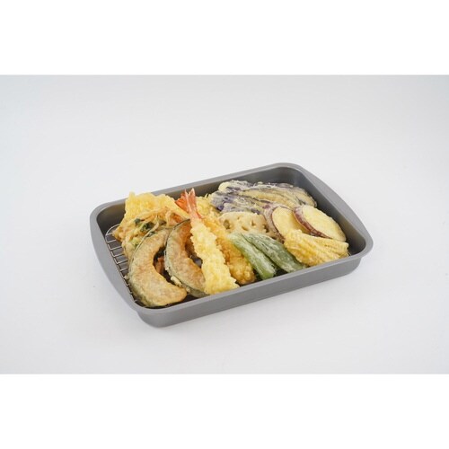 網付きで、天ぷらや揚げ物の油切りに最適です。 食材の下ごしらえや作り置きの保存にもおすすめです。 ふっ素樹脂加工で油汚れが落としやすく、お手入れ簡単です。 |