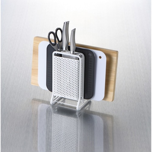 複数のまな板をコンパクトに収納できるまな板&包丁スタンドです。 まな板1枚、シートまな板2枚、包丁2本、キッチンバサミを収納できます。 鉄に粉体塗装を施し、丈夫でサビに強く耐久性があります。 |