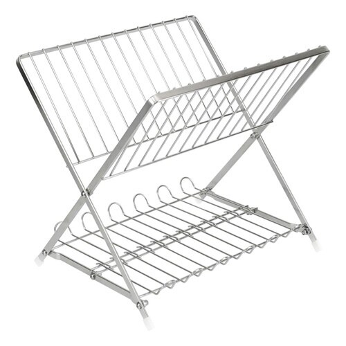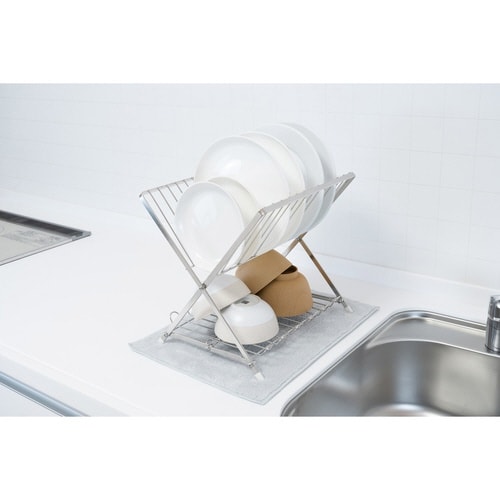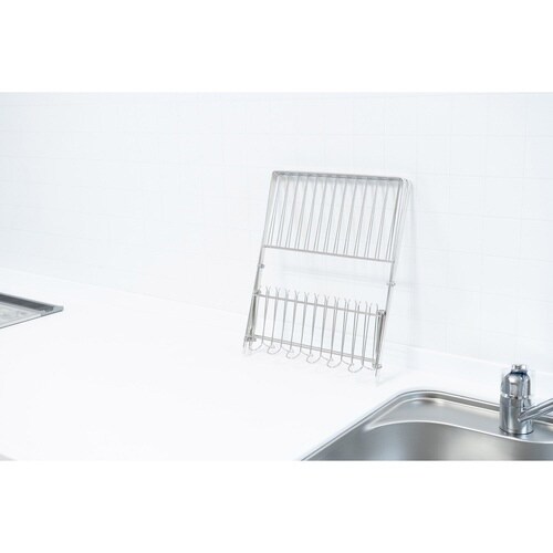 上段・下段で分割して洗い物が出し入れしやすい水切りラックです。 薄く折りたたむことができるので隙間にスッキリ収納ができます。 下段は食器が落ちにくい形状になっています。 |