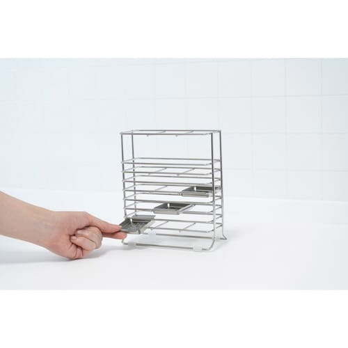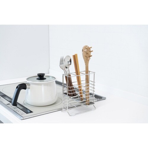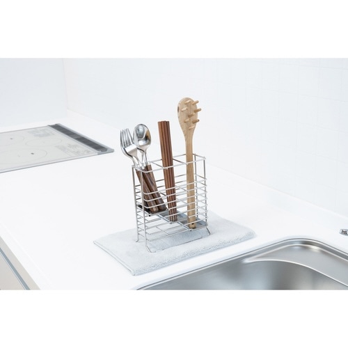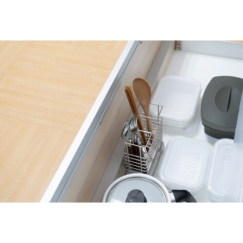 高さの違うツールを分けて水切り・収納でき、すっきり片付くカトラリースタンドです。 長さのあるツールの間に、短いスプーンなどが埋もれてしまうのを防ぎます。 |