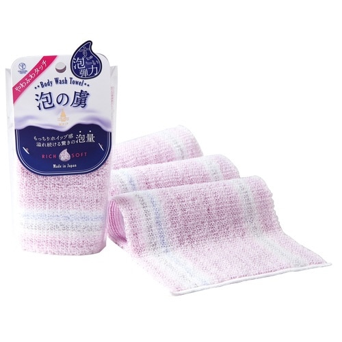 ふんわり優しく編み上げたソフトなボディタオルです。 生クリームのように濃密でキメ細やかな泡が溢れます。 お肌を包み込むように洗えます。 安心安全の日本製です。 |