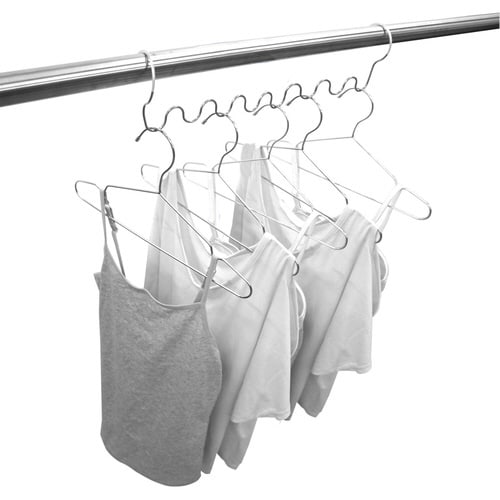 丈夫で錆びに強いステンレス製の8連ハンガーホルダーです。 ハンガーが風によって動いたり偏ったりするのを防ぎます。 クローゼットのバーに掛けて、吊り下げ収納としても最適です。 |