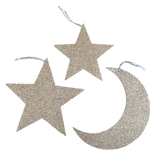月と星の形のオーナメント 表面はラメ付き 掛けたり貼ったり自由 組み合わせ色々 |