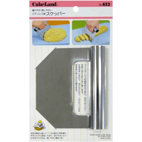 台の上でバターを粉に切り込む時に便利なスケッパーです。 材料を細かく刻んだり、まな板から鍋へきれいに運べます。 生地をまとめたりこびりついた生地を取り除く時にも重宝します。 丈夫なステンレス製です。 |