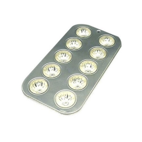 小さなかわいい花型のプチケーキが焼けるケーキ型です。 一度に10個焼き上がります。 熱伝導が良いのできれいにムラなく焼き上がります。 |
