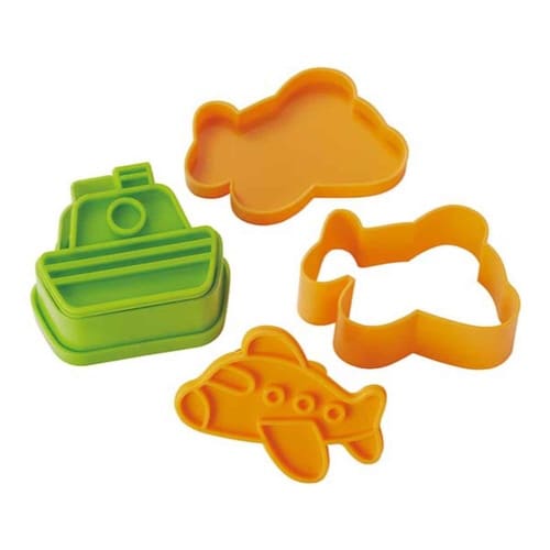 食卓やお弁当を素敵に演出するのりもののライス&パンの押し型です。 食パン2枚の間にレタスやハムなどの具材をのせ、抜き型で押して完成です。 |