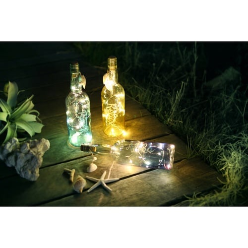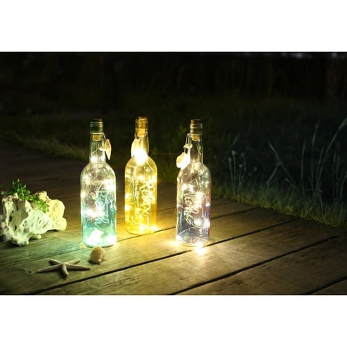 LEDライトがきらきらと光るグラデーションボトルランプです。 横に倒して飾っても砂浜に流れ着いたメッセージボトルのように素敵にディスプレイできます。 |