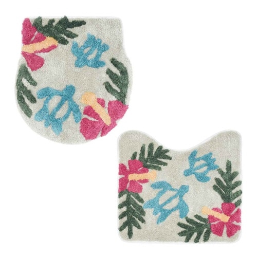 フタカバーとトイレマットの2点セットです。 ハワイアンなホヌとハイビスカスの模様です。 丈夫な生地で速乾性があるポリエステル素材です。 ふわふわした優しい肌触りが心地良いです。 |