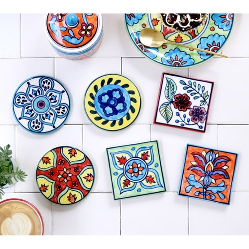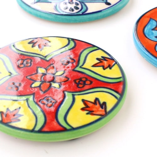 インドの職人がハンドペイントでひとつひとつ丁寧に描いた、エスニックの世界観が楽しめるコースターです。 インテリアとして飾っても、おしゃれに演出できるアイテムです。 |