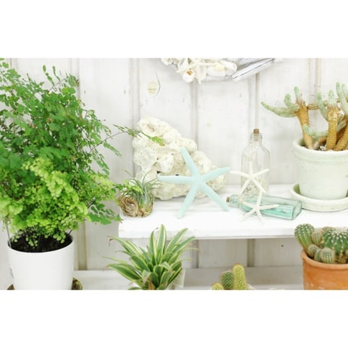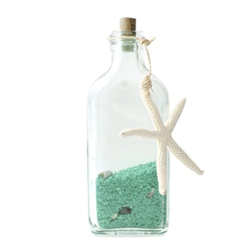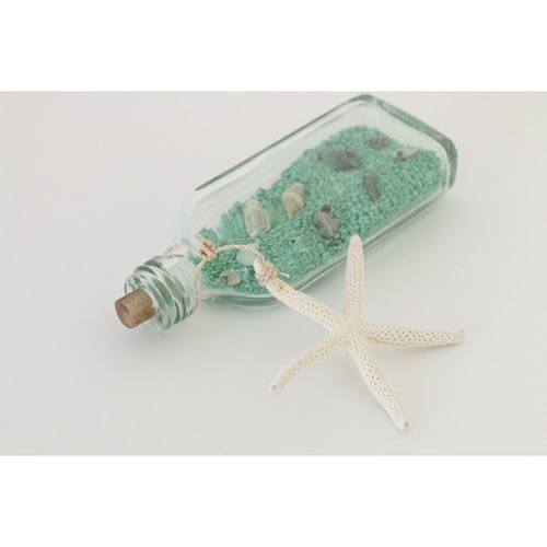 砂浜を瓶に閉じ込めたようなミニシェルボトルです。 エメラルドグリーンの砂と、大きなスターフィッシュが印象的です。 置くだけでマリンテイストの空間を演出してくれます。 |