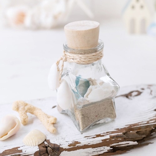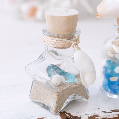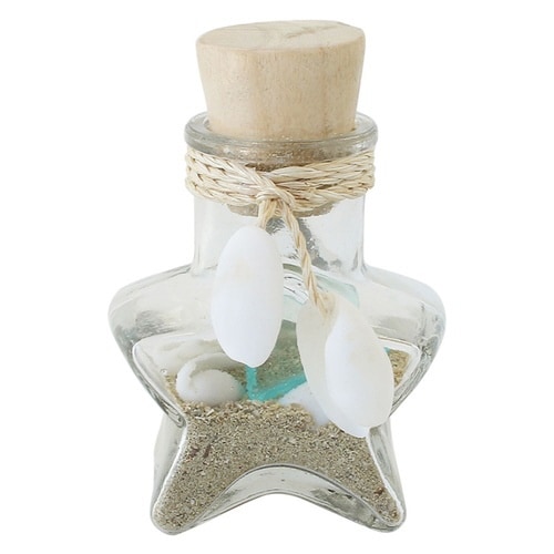 砂浜を瓶に閉じ込めたようなシェルボトルです。 置くだけでマリンテイストの空間を演出してくれます。 ミニサイズの星形ボトルが可愛いデザインです。 |