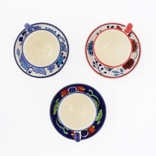 インドの職人がハンドペイントでひとつひとつ丁寧に描いた、エスニックの世界観が楽しめるカップとソーサーのセットです。 毎日のティータイムにはもちろん、来客時のおもてなしにもおすすめです。 |
