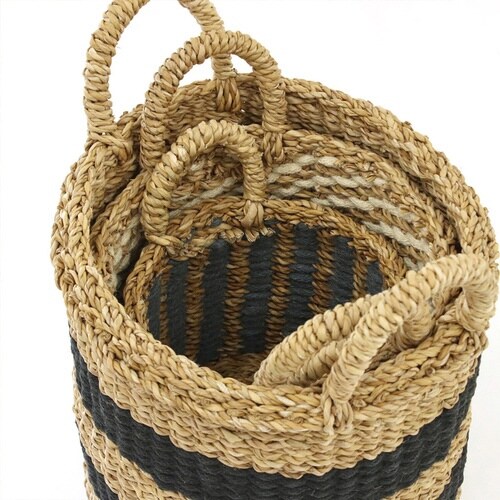 ジュートとシーグラスのコンビネーションが魅力的なバスケットです。 異なるサイズ感を楽しめる【S】【M】【L】の3個組です。 バスケットに収納するだけで生活感を抑えスタイリッシュな空間を演出します。 |