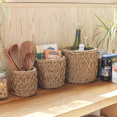 ジュートとシーグラスのコンビネーションが魅力的なバスケットです。 異なるサイズ感を楽しめる【S】【M】【L】の3個組です。 バスケットに収納するだけで生活感を抑えスタイリッシュな空間を演出します。 |