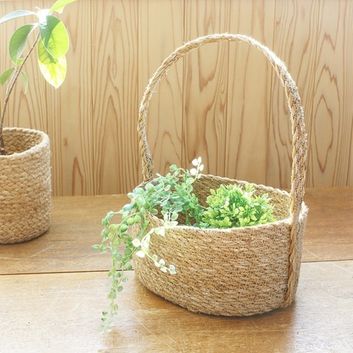 かご ハンドルバスケット ナチュラルシーグラス オーバル M 持ち手付き