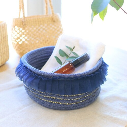 かご バスケット フリル 22cm ネイビー