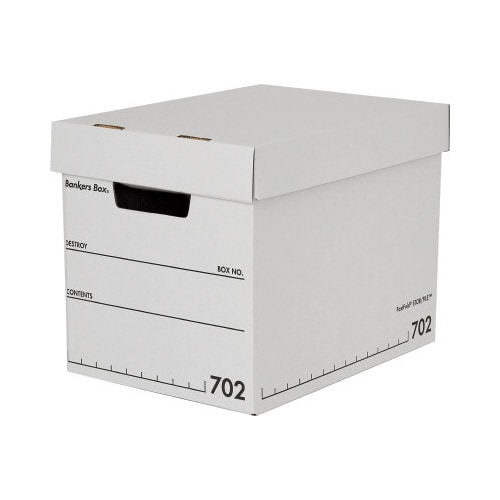 バンカーズボックス 収納ボックス 702ボックス 白 文字色ブラック フタ付き FE−100143116 1パック 3枚入 ペーパーボックス 文書保存箱