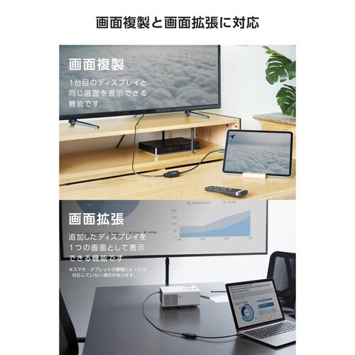 スマートフォンやパソコンなどの映像をディスプレイなどに出力できる、USB Type−C(TM)ポートをHDMI(R)ポートに変換するアダプターです。 |