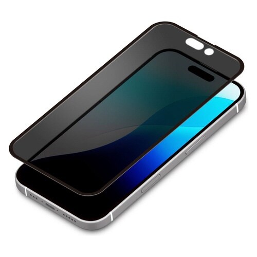 角割れを防ぐふたつの素材を使ったハイブリッド設計のiPhone 16/15用 液晶全面保護ガラス 覗き見防止/高光沢 |